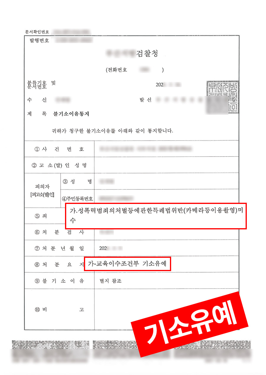 검찰은 변론에 따르면 정상 참작할 사정이 있다고 보아 교육 이수를 조건으로 기소 유예 처분을 내렸습니다.