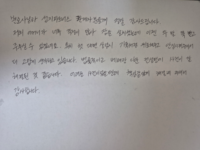 변호사님과 성지파트너스 관계자 분들께 정말 감사드립니다.