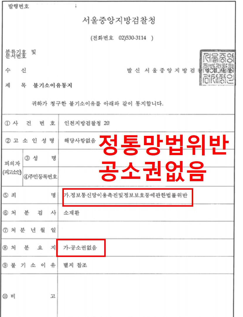 #정보통신망이용촉진및정보보호등에관한법률위반 #공소권없음 # 불기소결정